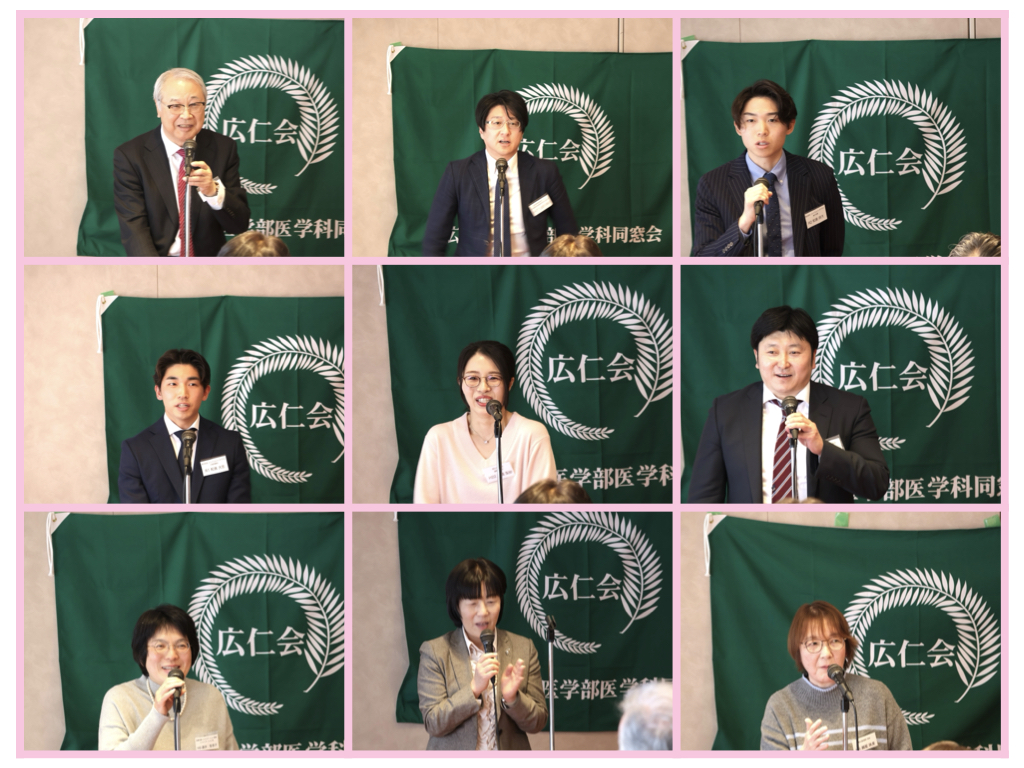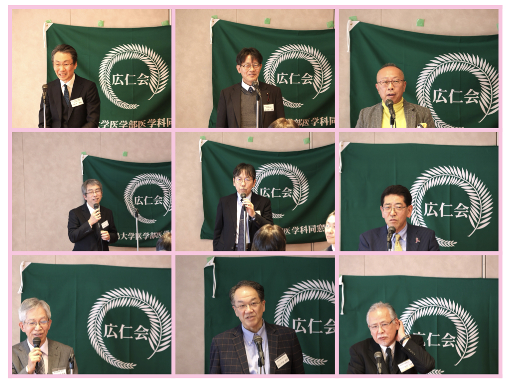 中締めのご挨拶はS51 山科 章先生(みやびハート&ケアクリニック名誉院長)にしていただき、集合写真を撮った後にお開きとなりました。ご参加の先生、年始のお忙しい中、誠にありがとうございました。また、出欠の確認の際、60名近くの先生にチェックいただき、不参加の先生方よりもコメントを頂戴いたしました。合わせて御礼申し上げます。