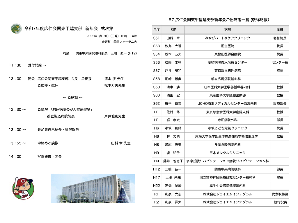 また次回会合である令和7年度関東甲信越支部総会の日程が決定しました。令和7年6月22日 (日) 正午〜となります。場所は東京駅近辺を考えておりますが、決定次第、ご連絡差し上げます。皆様の奮ってのご参加、お待ちしております。